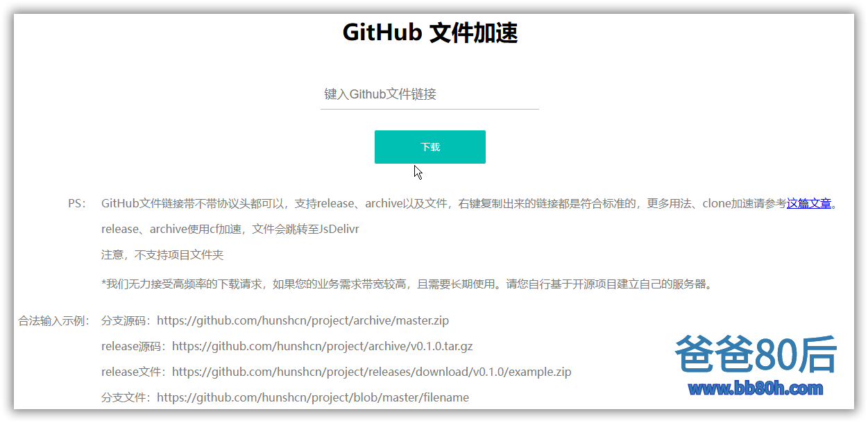 GitHub文件链接带不带协议头都可以,支持release、archive以及文件,右键复制出来的链接都是符合标准的,更多用法、clone加速请参考这篇文章。 release、archive使用cf加速,文件会跳转至JsDelivr 注意,不支持项目文件夹 声明:本站所有文章,如无特殊说明或标注,均为本站原创发布。任何个人或组织,在未征得本站同意时,禁止复制、盗用、采集、发布本站内容到任何网站、书籍等各类媒体平台。如若本站内容侵犯了原著者的合法权益,可联系我们进行处理。