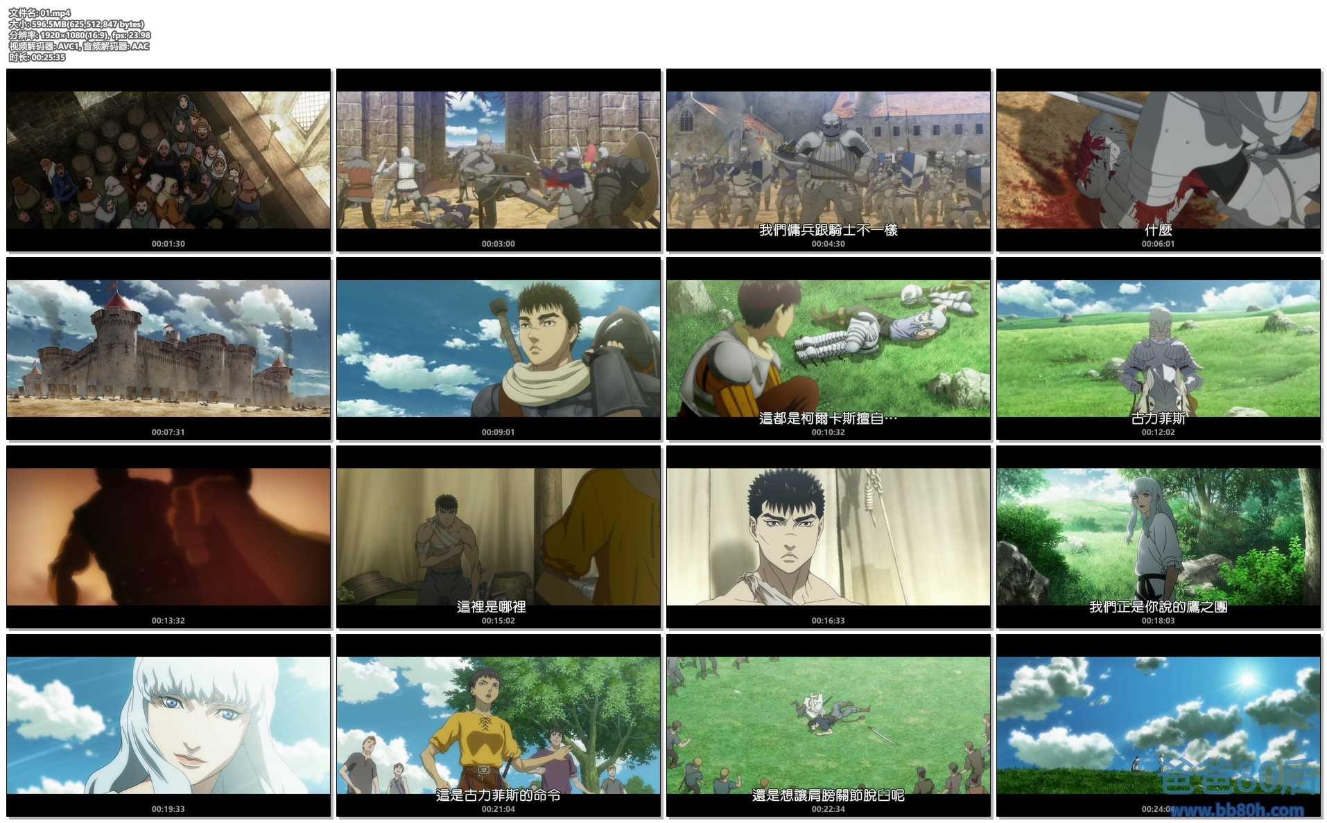 百年战争,世事颠倒,人心糜烂,贪欲横行。各国之间兼并攻伐,血流成河。名叫格斯的男子(岩永洋昭 配音)凭藉一己之力在佣兵中打出名号,也引起另一个强大男人的观注。不久,他遭遇了令人闻风丧胆的佣兵部队“鹰之团”及其具有超凡魅力和实力的领导者统治者格里菲斯(樱井孝宏 配音)。格斯在挑战格里菲斯的战斗中败北,此后加入鹰之团,成为其中最为骁勇的战将。在连番激烈的战斗中,他与战友建立起坚不可摧的友情,更得到格里菲斯的赏识,后者甚至不顾自己的安全拯救被恶魔佐德折磨的格斯。但随着鹰之团成为米特兰王国的正规军,以及格里菲斯被封为贵族,淳朴的战友之情开始蒙上阴谋的鬼影……